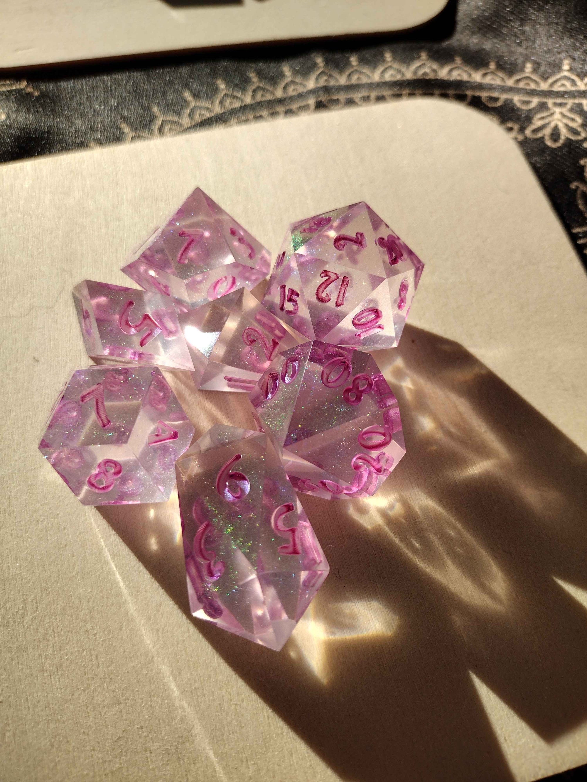 This dice set is based off of the character Glinda from Wicked.