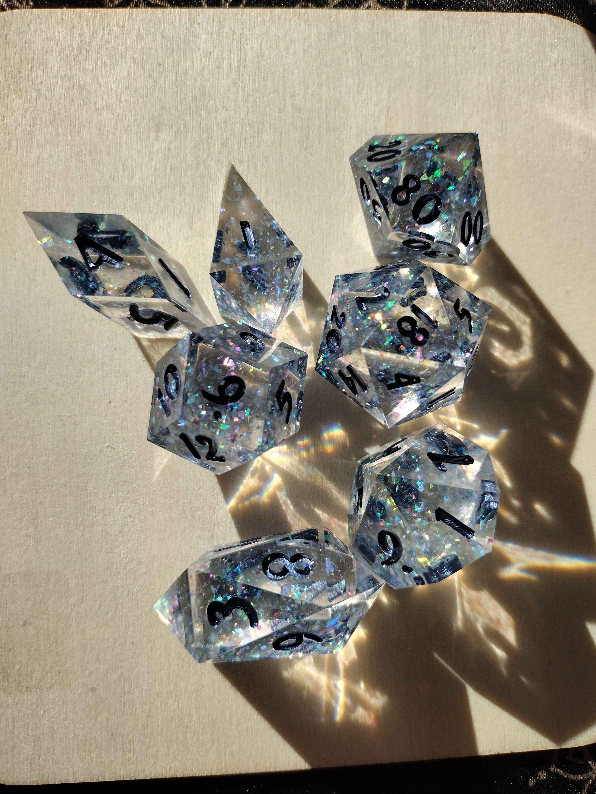 Twinkling stars and lights hold and captivate people's attention. These dice work to do the same thing with their multitude of sparkling colors within.